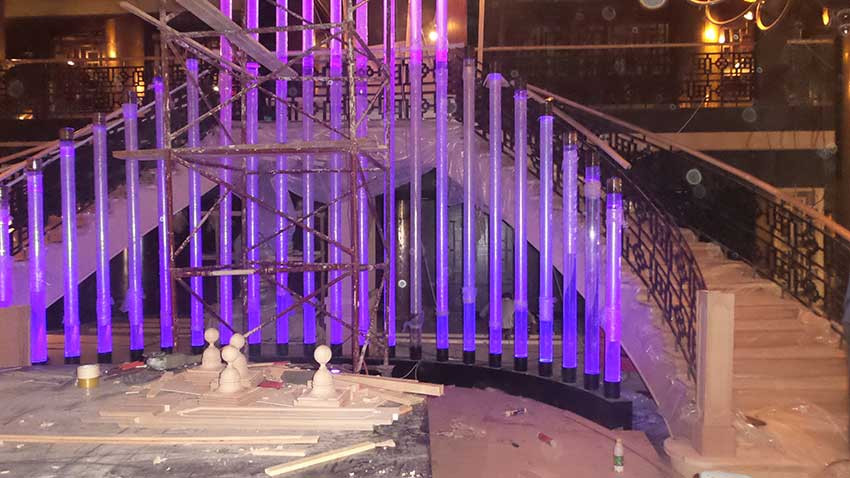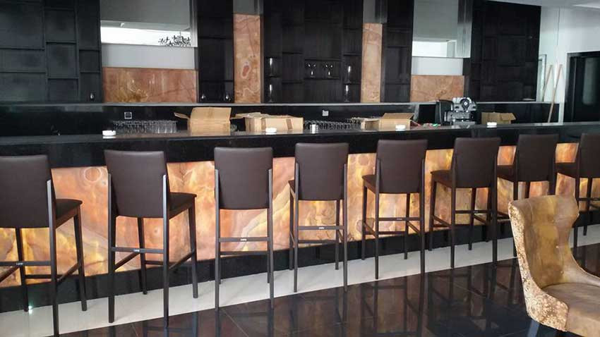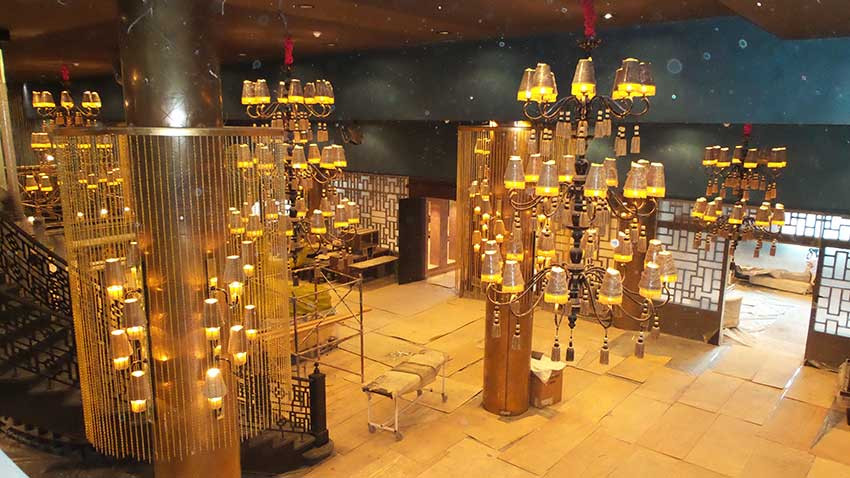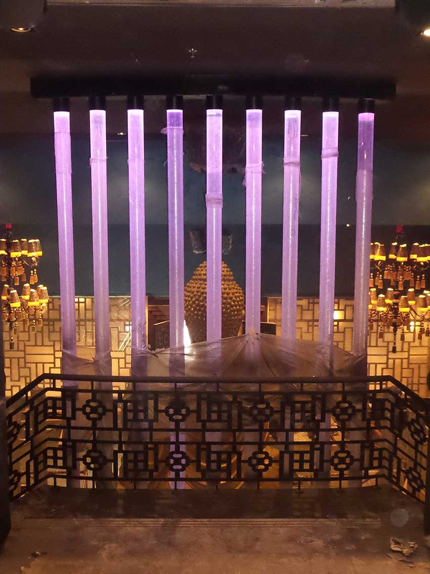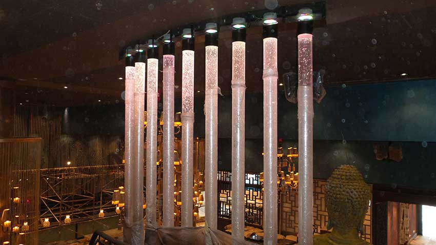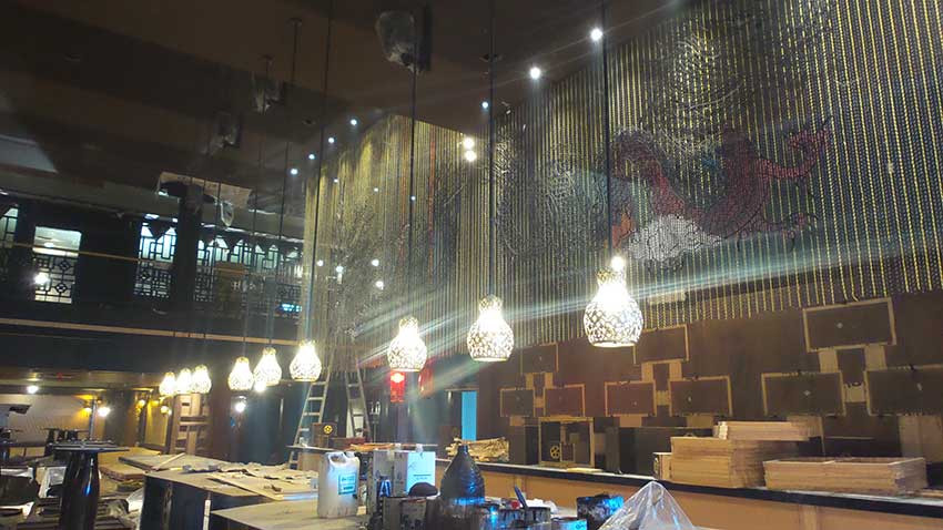 All decorative and furnishing items were fabricated using a variety of materials to apply an Asian style theme. The icon of this project is a 9-meter long bubbling water fountain in the center of the club court.