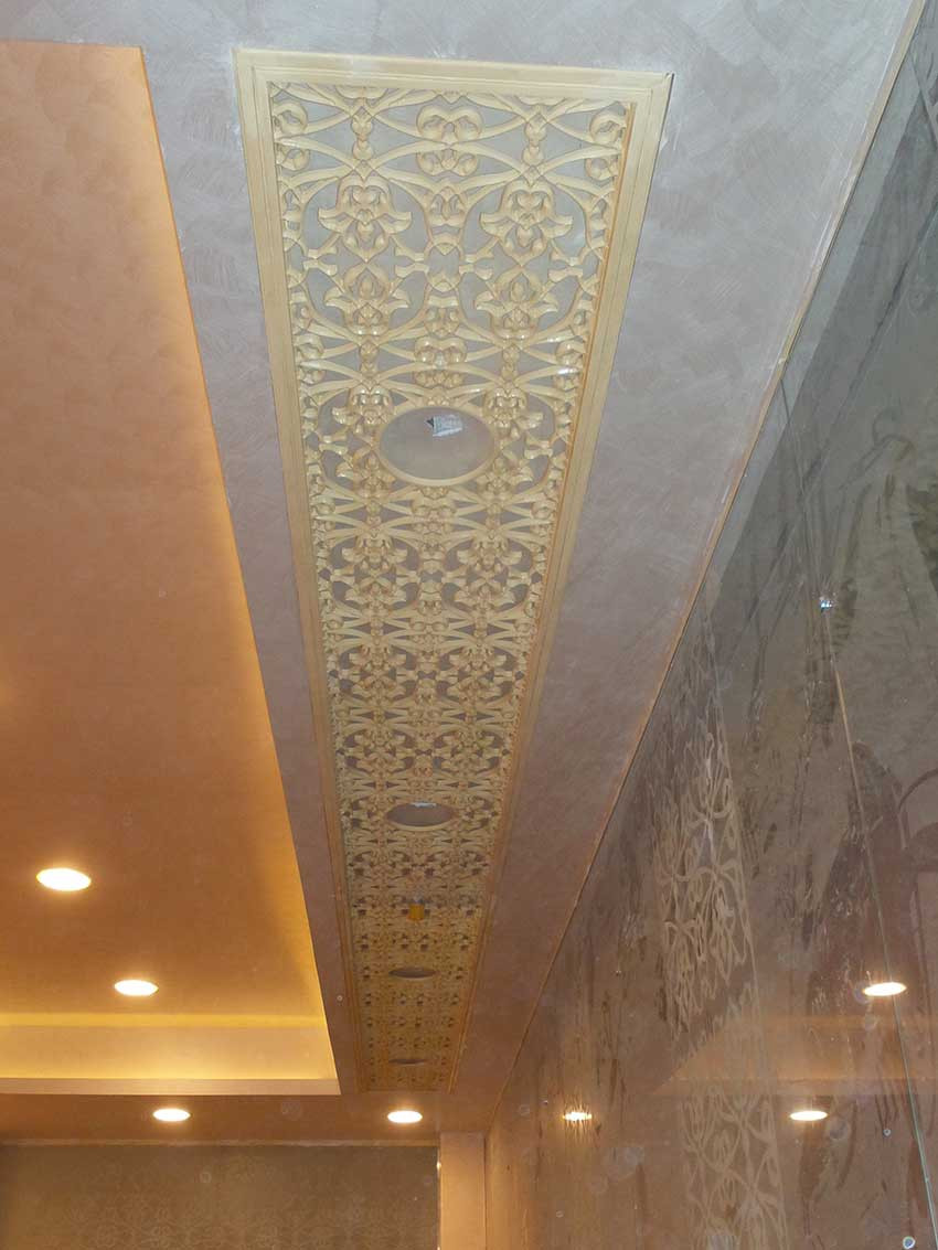 The pieces featured the most in the hotel follow an Arabian-inspired cladding and decorative piece design.