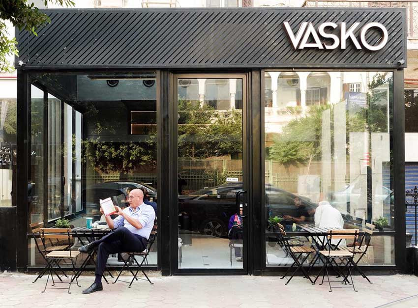 Before it’s successful expansion into New Cairo, Vasko’s first branch was established in the Korba, Heliopolis area. The Coffee Shop’s design featured various metal and steel structures with a black PVD coating, lighting units, and their infamous signages.