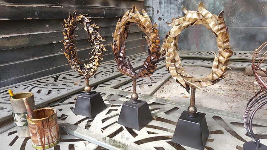 Inspired by rustic designs, Viking is a project that features multiple metallic elements, from small decorative pieces to lighting cages to a stand-off sculpture. The project also includes wooden features.